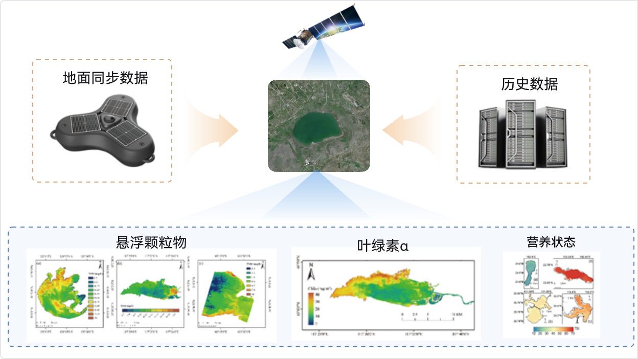 除了利用卫星、无人机遥感常规监测叶绿素a、浊度等光敏参数,还可结合智能水质光谱仪可实现化学需氧量、总氮、有机碳、总磷等参数的监测,有效拓展了可监测的水质指标。