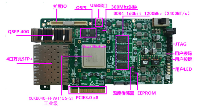 FPGA型号 | XCKU040-FFVA1156-2I(等级2,工业级) |