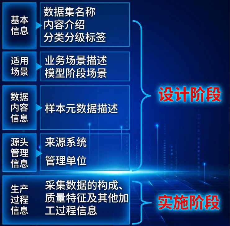 该环节主要目标是完成高质量数据集的编目化及内容设计,基于筛选确认的高质量数据集清单,对每个数据进行分类分级、数据特征、标签、元数据、样例数据整理,编制数据集内容规范《高质量数据集目录建设标准》,为后续的数据生产加工与智能应用提供清晰、统一的执行依据。