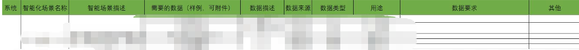 通常,我们会按照上述表格样式进行归纳整理,主要包含智能场景描述、需要的数据(样例)、数据描述、数据来源、数据类型、用途、要求等等。
