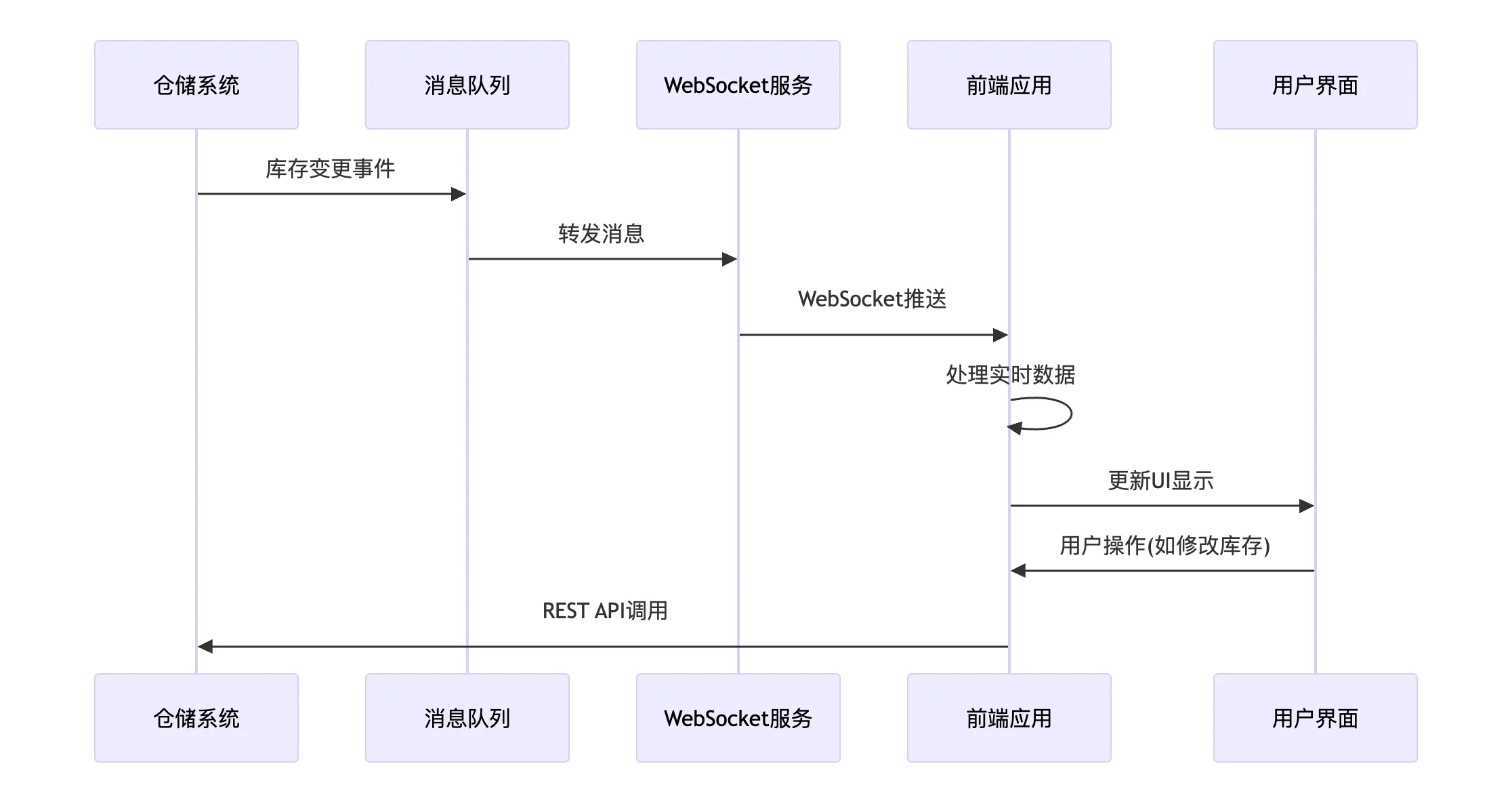 下面的序列图展示了库存同步的完整数据流程: