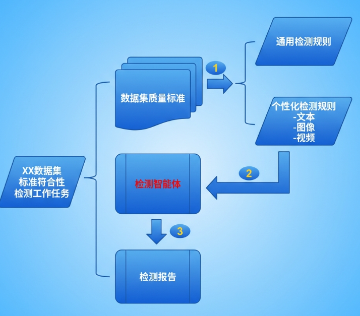 数据集编目上架后,并非直接进入可用状态,还需经过严格的符合性检测,这是保障数据质量、避免 “垃圾进、垃圾出” 的最后一道质量闸门。本环节以《高质量数据集 质量评测规范(征求意见稿)》为指导,从说明文档维度、数据质量维度、模型应用维度三大核心维度,对数据集进行全面体检,确保其满足 AI 模型开发、训练及业务场景的核心要求。
