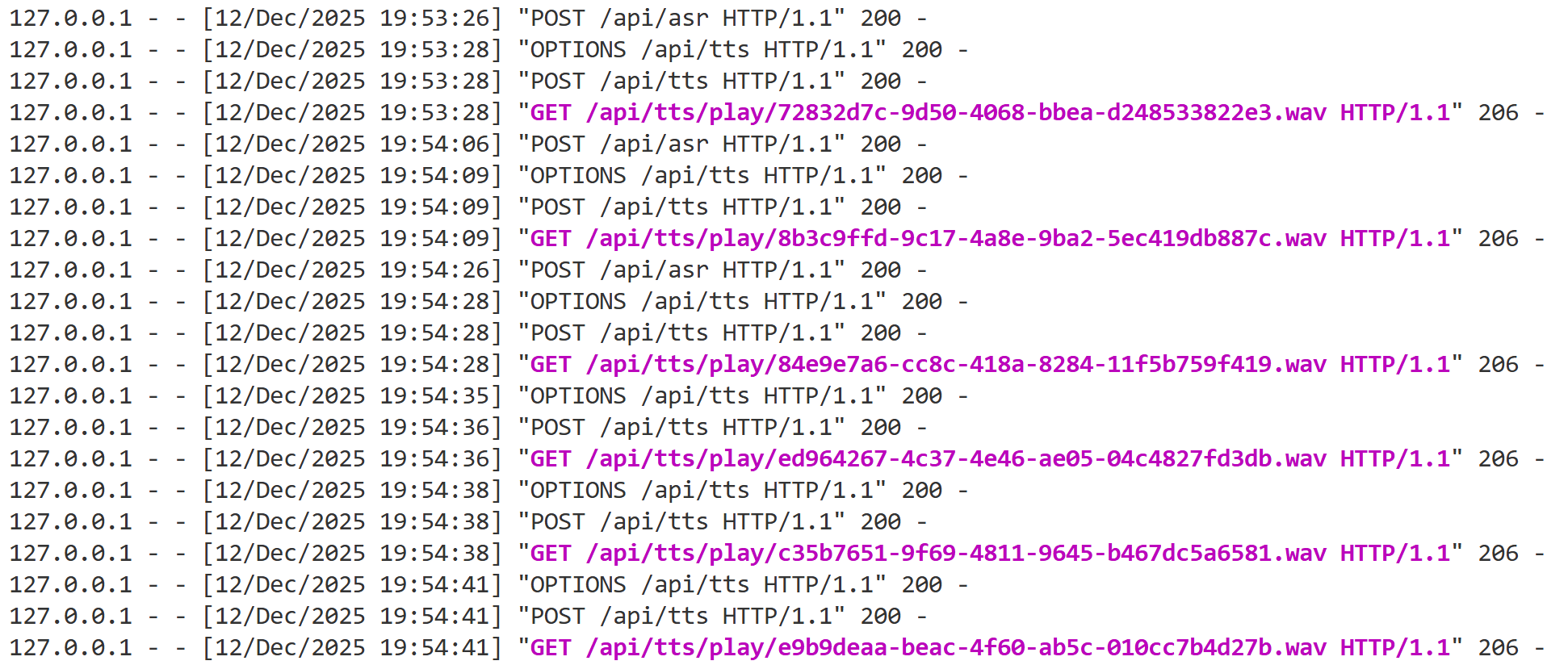 后端的核心是提供稳定的 API 接口,实现 ASR 转写、TTS 生成、音频管理三大功能,关键代码逻辑: