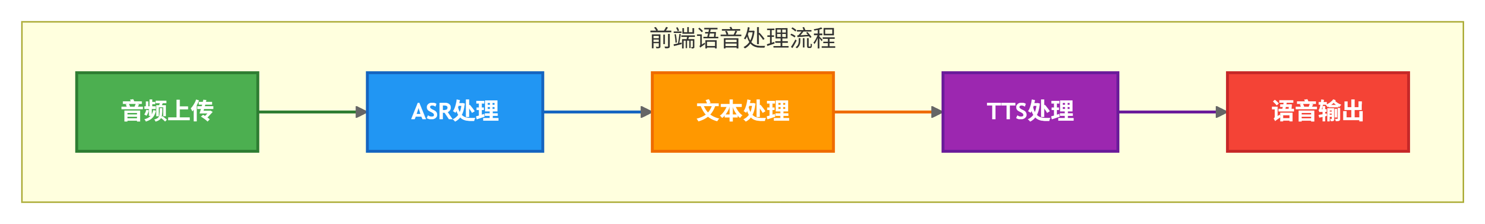前端基于原生 HTML/CSS/JavaScript 开发,搭配 Web Audio API 实现浏览器端无插件录音,界面包含录音控制、ASR 结果展示、TTS 文本输入及语音播放等核心功能,同时添加操作状态提示(如 “正在转写”“生成成功”)和自动文本填充机制,无需依赖任何前端框架,轻量易部署。