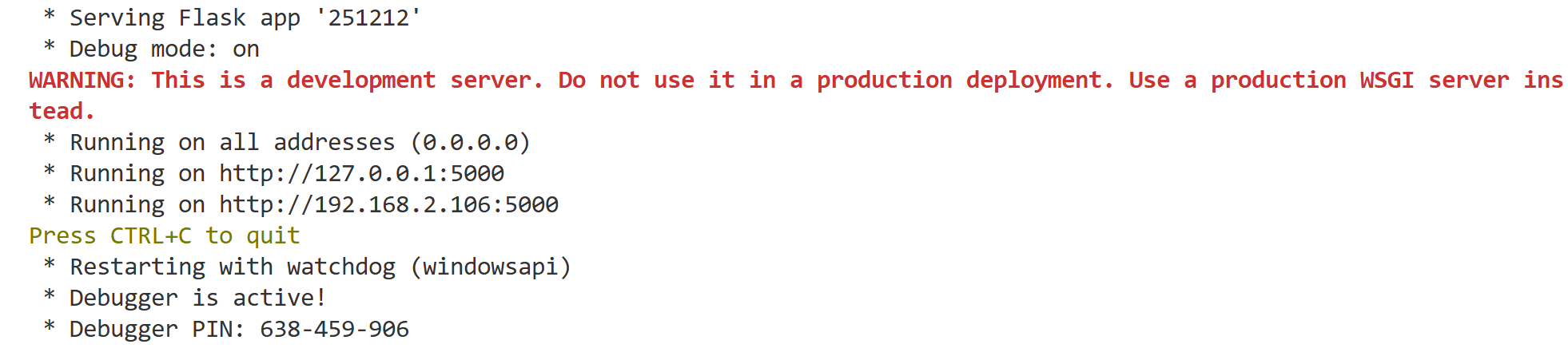 # 启动Flask服务(允许外部访问,调试模式)