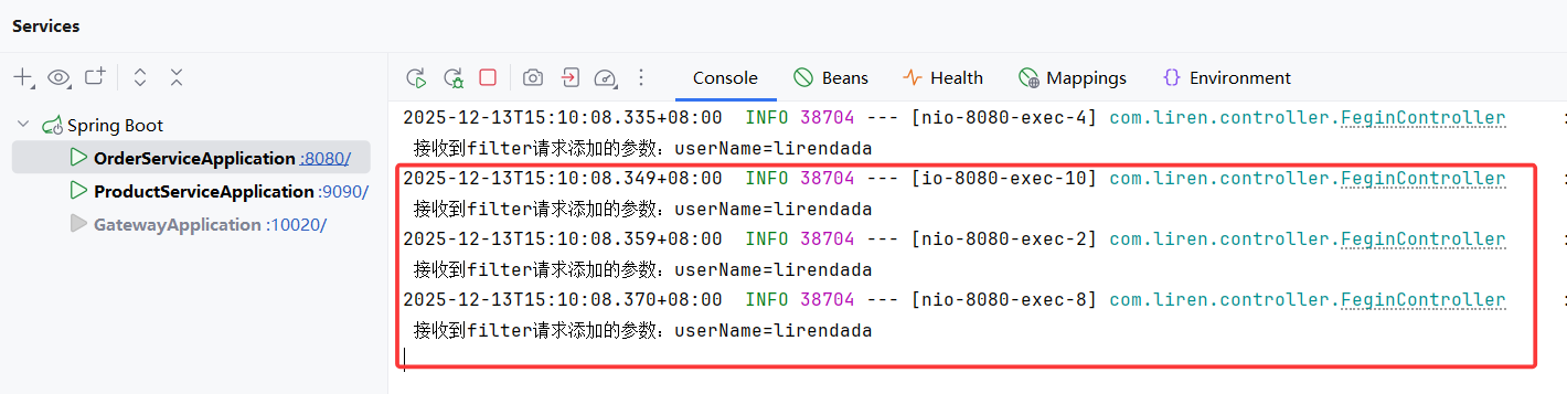 name: lirendada # 这里的 name 是 CustomConfig 的字段,要和上面区分开重启服务,访问接口,观察日志:http://127.0.0.1:10020/order/1