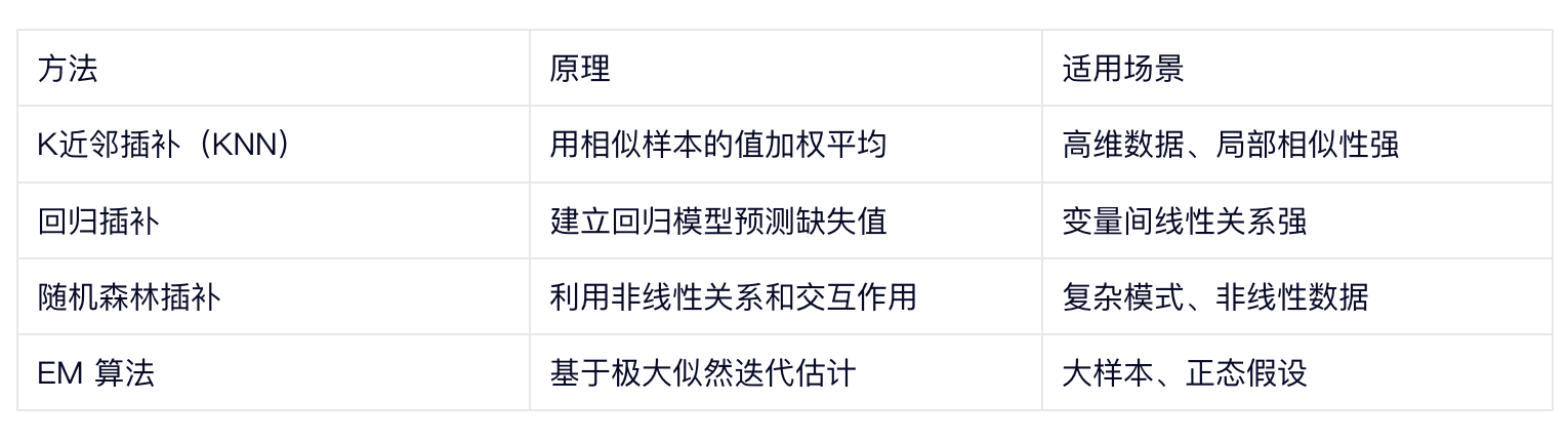 某些模型原生支持缺失值,无需预处理:决策树/随机森林/XGBoost:通过“代理分裂”处理缺失;贝叶斯网络:将缺失视为隐变量;全信息最大似然(FIML):在结构方程模型(SEM)中直接使用不完整数据 。