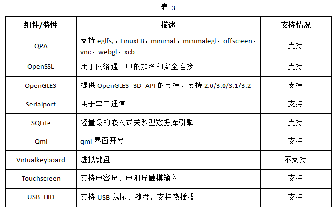 Qt组件支持情况如下,详情请查看产品资料“4-软件资料\Linux\Filesystem\rootfs-feature-support”文件。