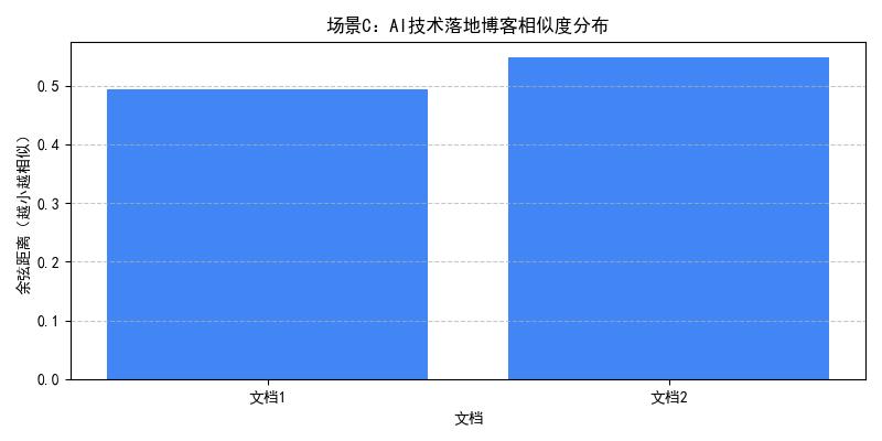 plot_similarity(results_c, "场景C:AI技术落地博客相似度分布")输出结果: