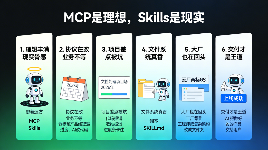 MCP是理想,代表了AI Agent互联的美好愿景。但Skill是活下去的工具,能帮你在竞争激烈的市场中快速交付价值。