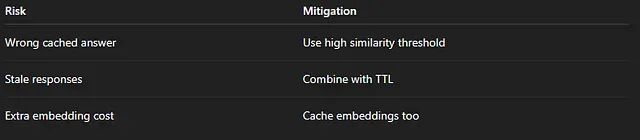 语义缓存的核心风险在于阈值设定。设得太低会把不相关的 Prompt 混为一谈,返回错误结果;设得太高又和精确匹配没什么区别。0.90 是一个比较常见的起步值,具体数字需要根据业务场景调优。