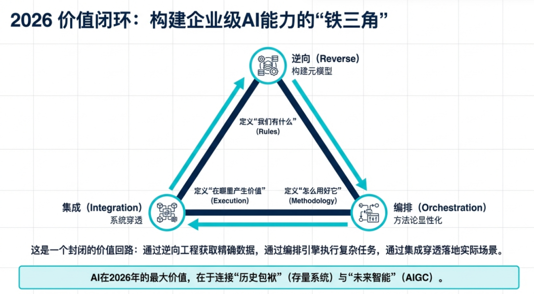 所以最后再总结一下,核心的三个点我把它归纳为:逆向、动态的组合编排,以及集成穿透。所有我们在考虑AI大模型的时候,都要从这三个方面去入手,因为这三个方面是更加容易体现模型价值的地方。