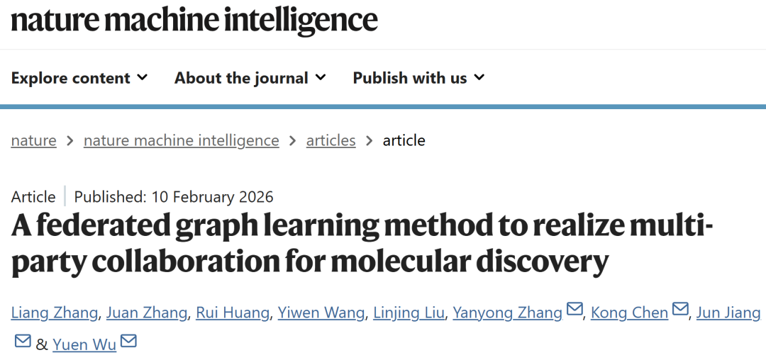 Zhang, L., Zhang, J., Huang, R. et al. A federated graph learning method to realize multi-party collaboration for molecular discovery. Nat Mach Intell (2026).