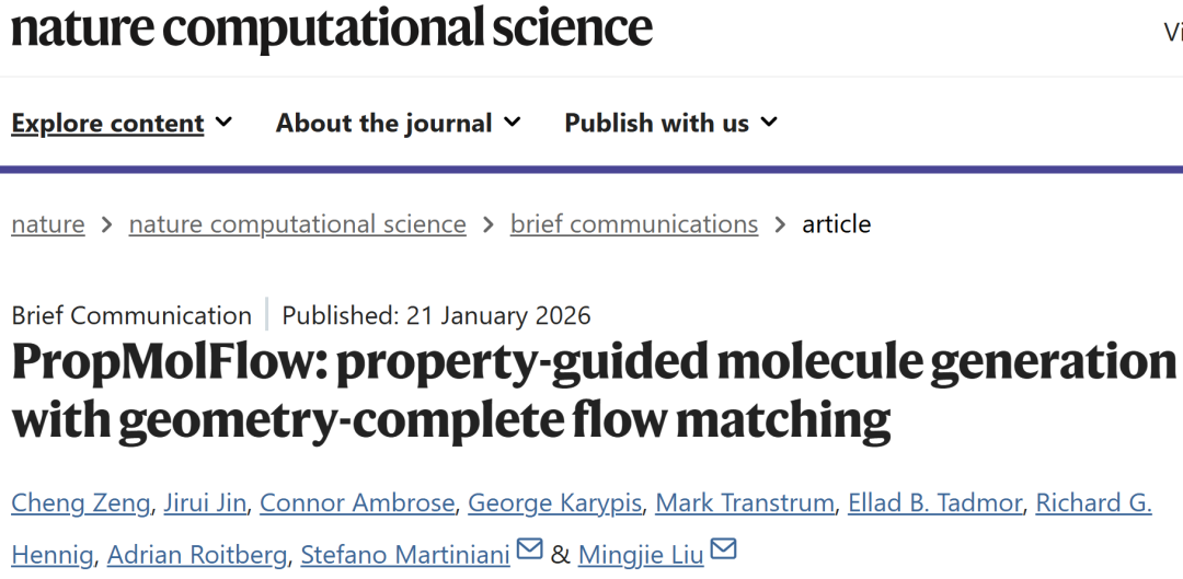 Zeng, C., Jin, J., Ambrose, C. et al. PropMolFlow: property-guided molecule generation with geometry-complete flow matching. Nat Comput Sci (2026).