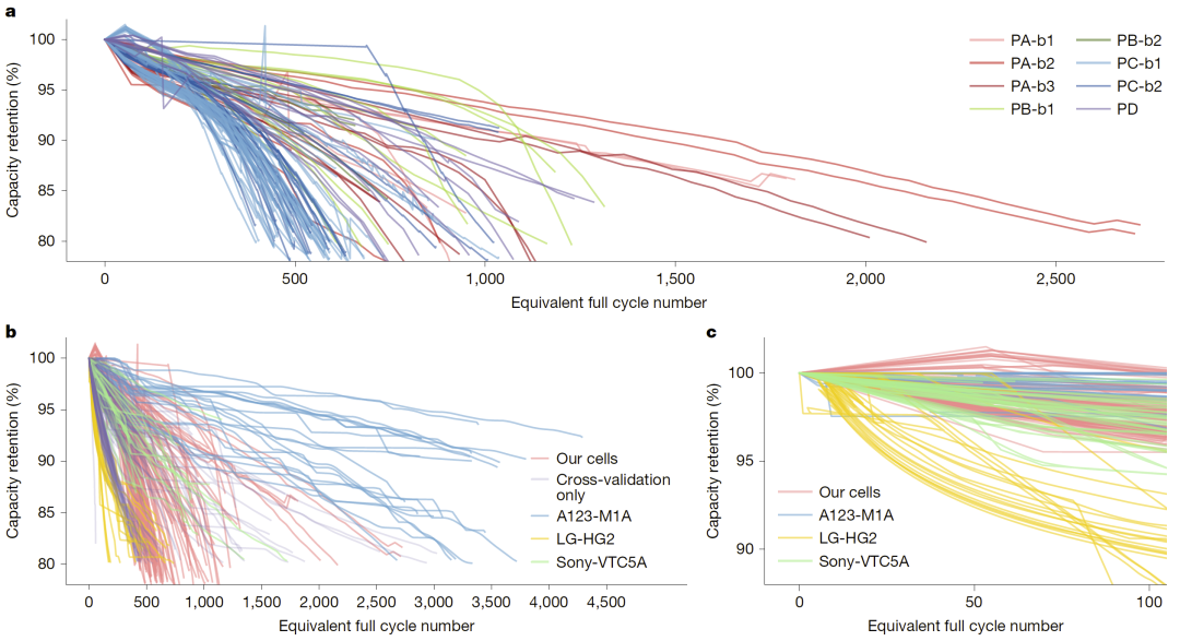 图2:工业级大容量电池与公开数据集的老化行为对比。