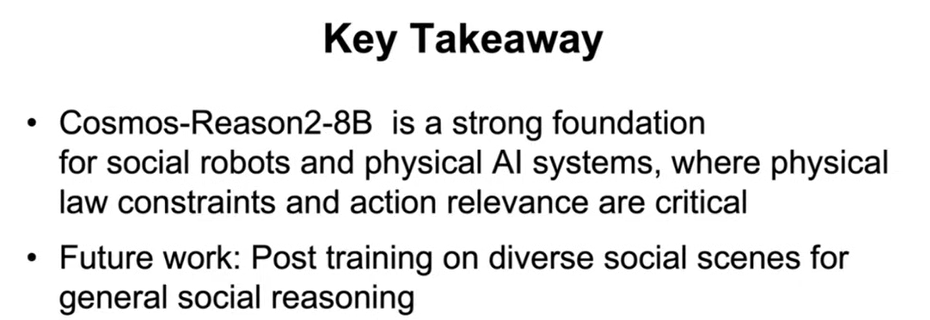 值得注意的是,研究团队发现微调后的Cosmos Reason模型性能超过了原始论文中发布的专门模型。这表明,Cosmos Reason作为一个通用的推理模型,在经过特定任务的微调后,能够在该任务上达到甚至超越专门设计的模型的水平。