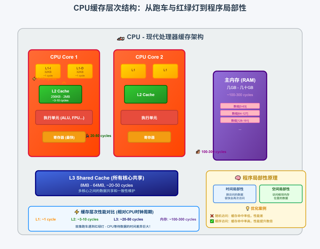 举个例子,当你遍历一个数组的时候,CPU会把整个数组的一部分都加载到缓存里,这样后面访问相邻元素的时候就不用再去内存拿了。这就是为什么循环遍历数组比随机访问要快得多的原因。