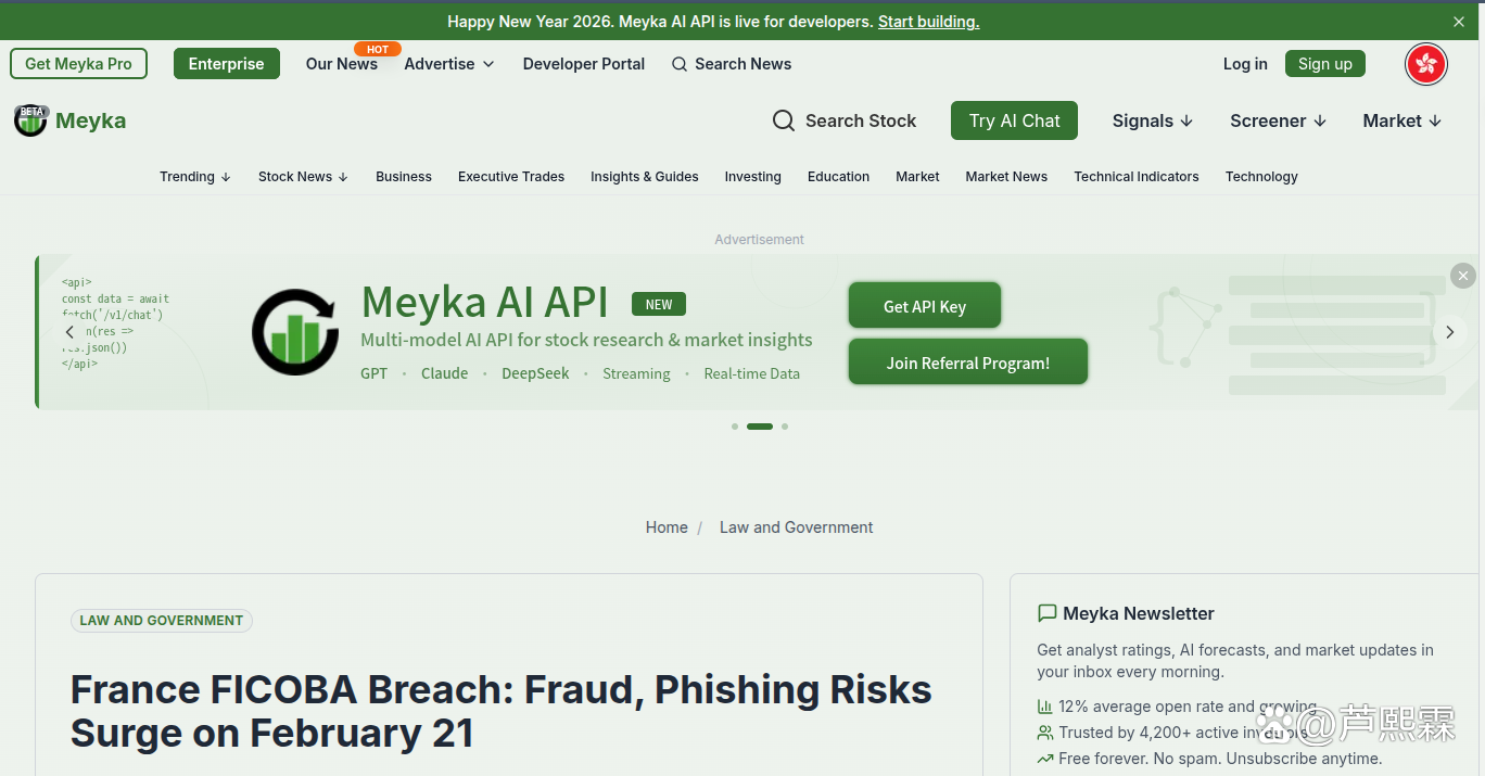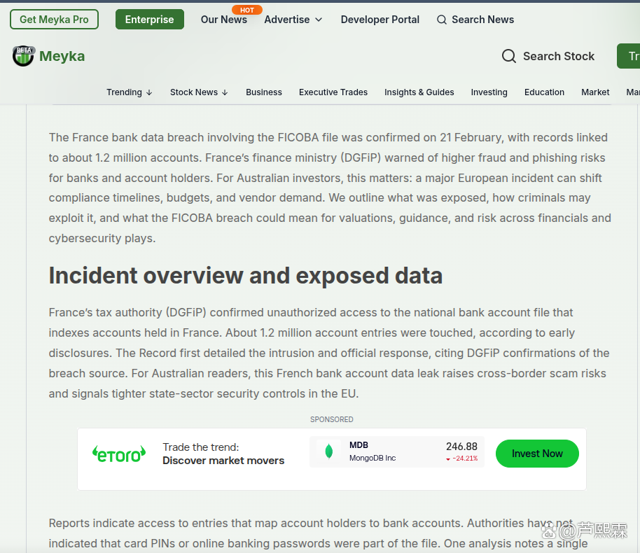 随着全球数字化金融基础设施的深度融合,国家级数据库已成为网络攻击的高价值目标。2026年2月21日,法国财政部(Direction Générale des Finances Publiques, DGFiP)发布官方公告,确认其管理的国家银行账户文件(Fichier des Comptes Bancaires et Assimilés, 简称FICOBA)遭到非法入侵。FICOBA作为法国金融监管的核心组件,记录了所有在法国境内开设的个人及企业银行账户的基本元数据,包括账户持有人身份信息、开户机构代码(BAN)、国际银行账号(IBAN)以及账户状态等。此次泄露事件波及约120万个账户条目,虽然DGFiP明确指出未涉及账户密码、PIN码或实时余额等动态敏感信息,但静态关联数据的暴露引发了学术界与工业界的深切担忧。