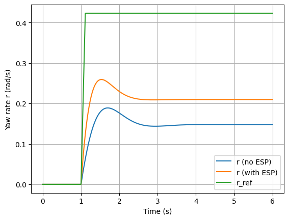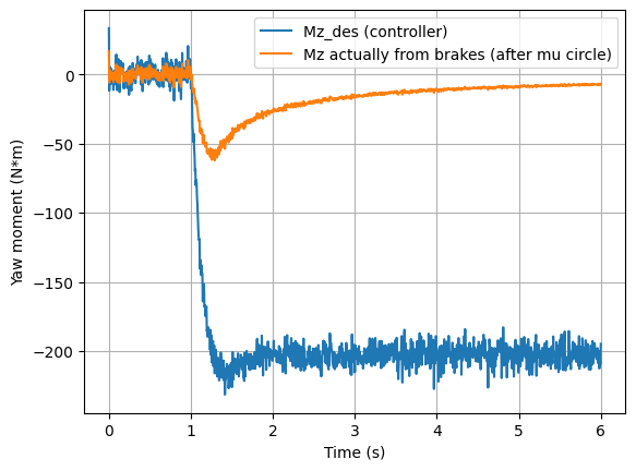 # We'll implement as: compute dr = (Mz_lat + Mz_des)/Iz, i.e., bypass brake allocation and friction limit.