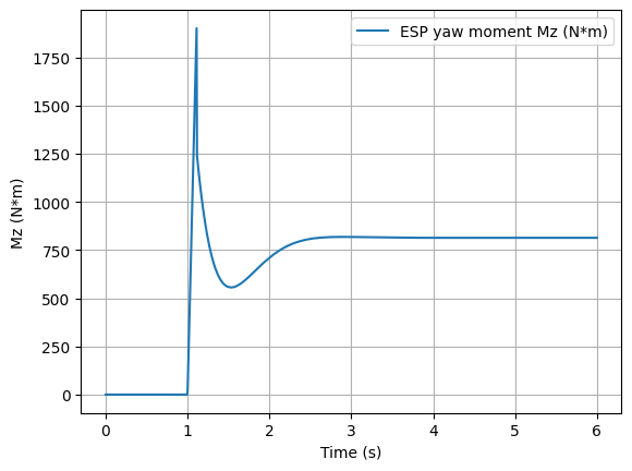 # (2) ideal ESP: apply "Mz_des" directly as external yaw moment (not realistic)