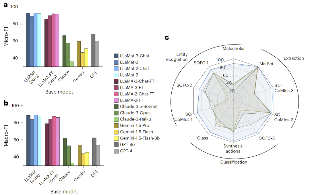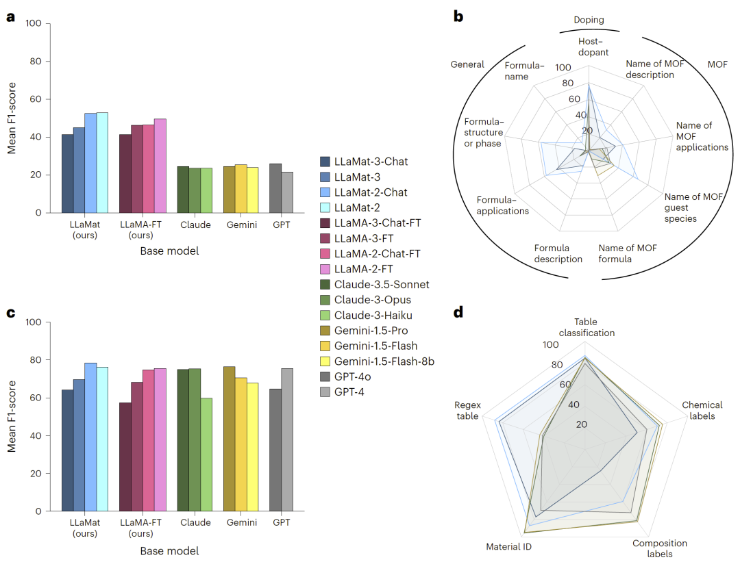 图3: LLaMat在材料科学各子领域中的结构化信息抽取能力评估结果。