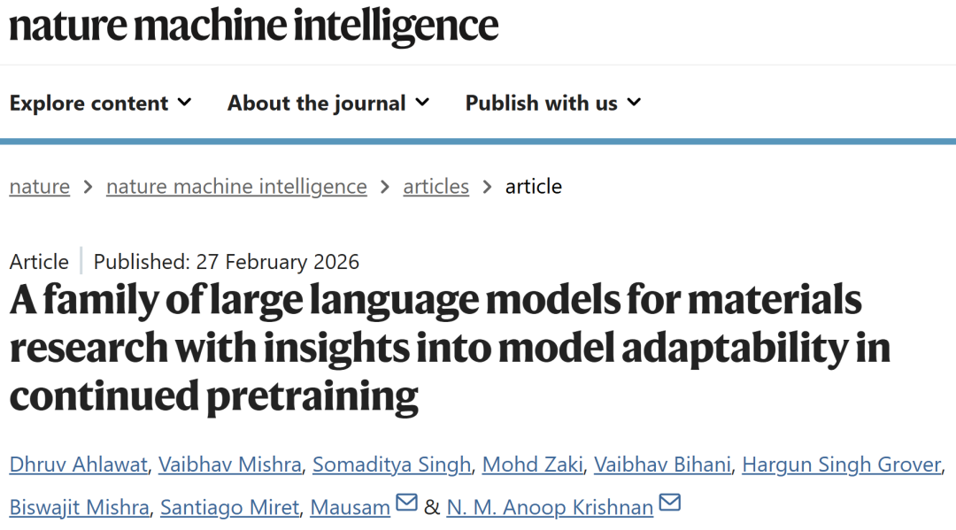 Ahlawat, D., Mishra, V., Singh, S. et al. A family of large language models for materials research with insights into model adaptability in continued pretraining. Nat Mach Intell (2026).