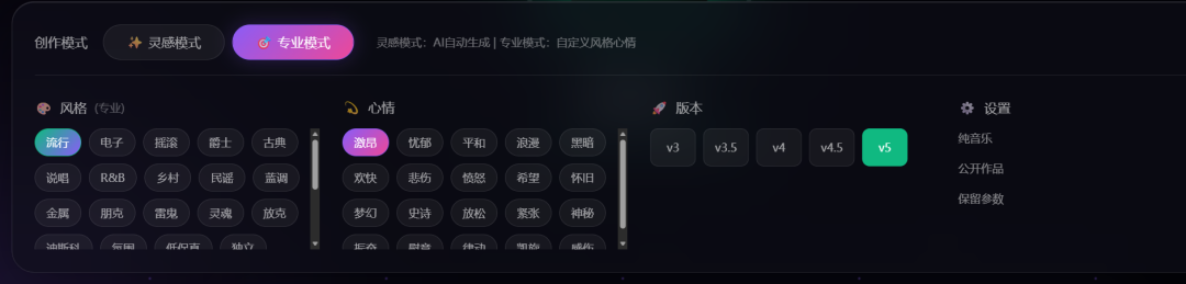 工作流为了稳定性:90-120秒最好,超过最好按批次生成,生成的时候带有风格标签,包括曲风、乐器、氛围、节奏和唱腔风格,例如心情标签:舒缓、治愈、温馨、轻快、放松、平静、活力、温柔、清新、沉稳
