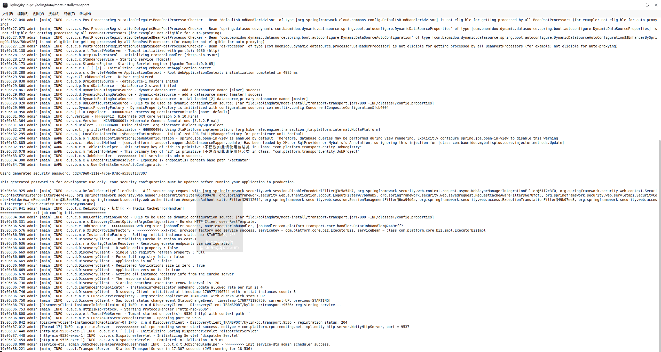 ✅【中枢平台】服务启动成功