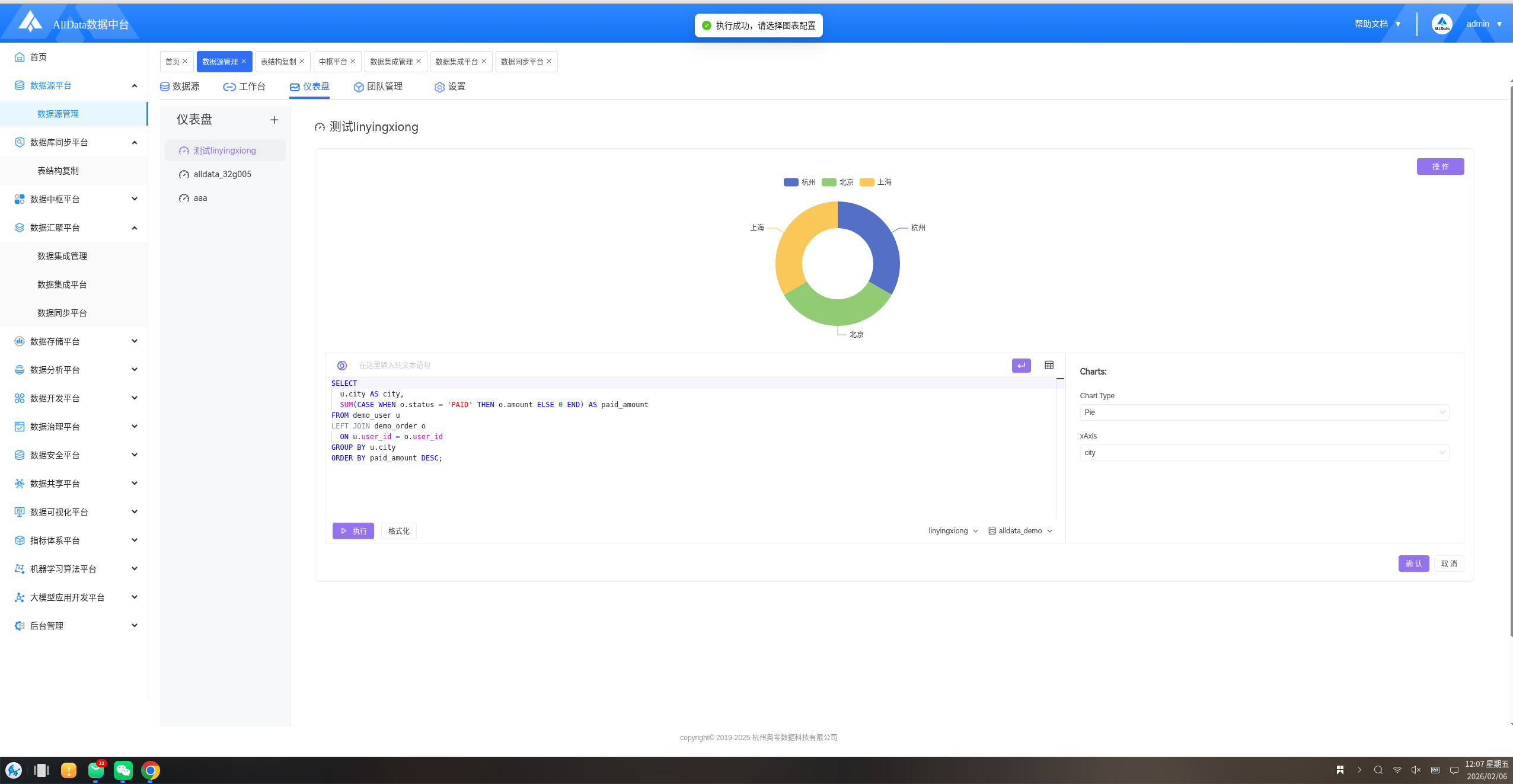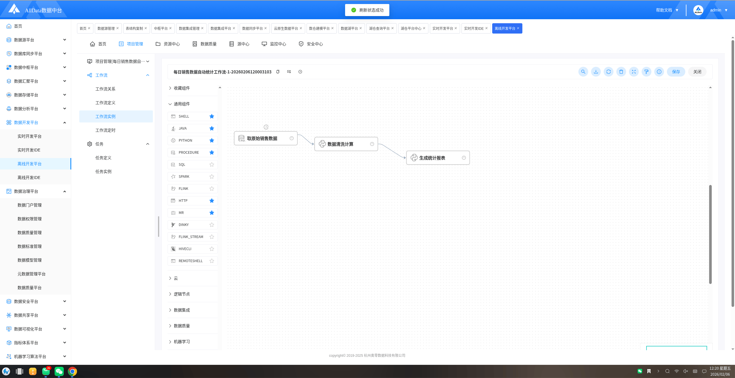 ✅【数仓平台中心】运行成功,如下图