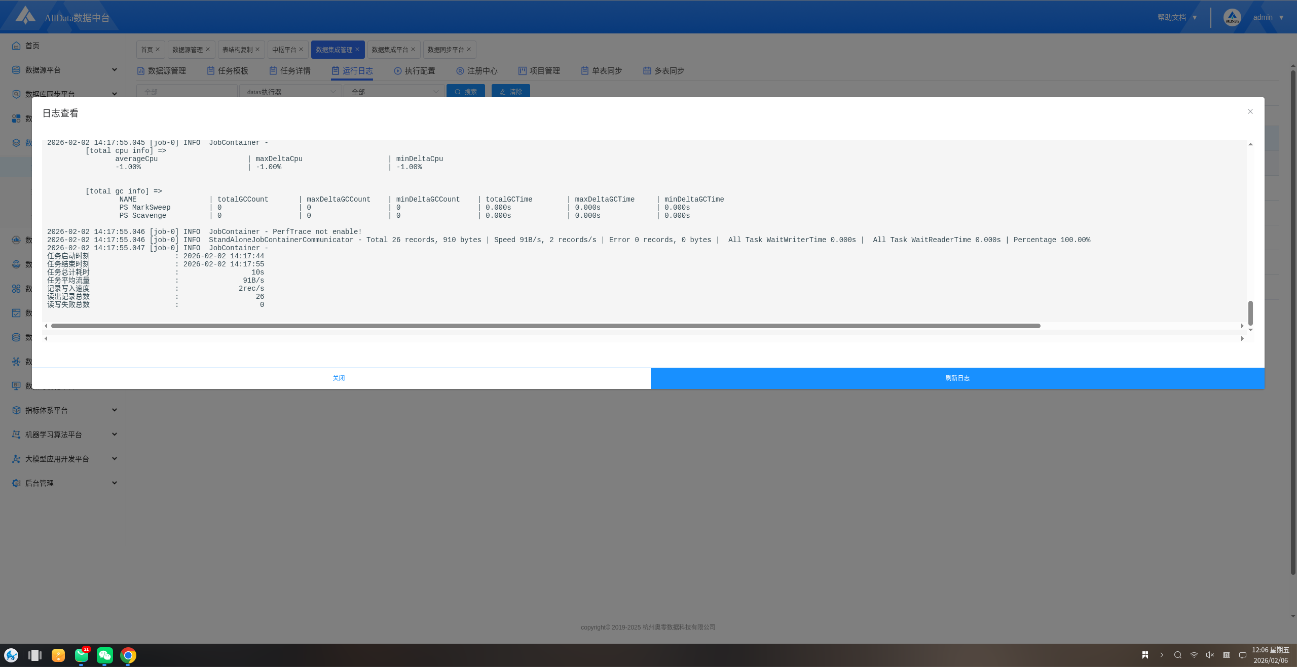 ✅ 【数据集成平台】服务启动成功