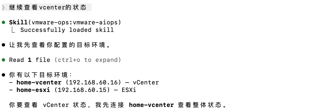 于是我做了一件事:写了一个 Skill,让 AI Agent 直接管理 VMware 环境。
