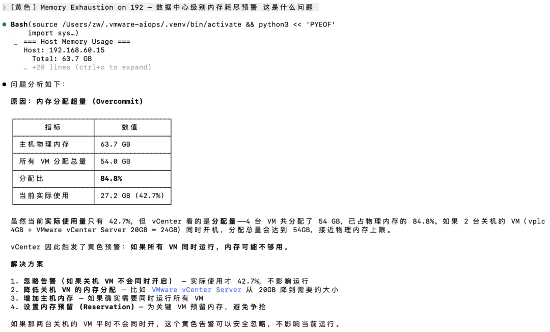 VMware-AIops 是一个开源的 AI 技能包,让你用自然语言管理 vCenter Server 和 ESXi 主机。