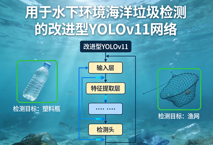 在本研究中,我们提出了一种改进的基于YOLOv11的架构,用于水下海洋垃圾检测。为了应对复杂水下环境(如物体遮挡、尺度变化和背景噪声)带来的挑战,我们引入了两个关键模块:MixStructureBlock(通过混合卷积结构增强多尺度特征表示)和EMA模块(自适应地聚焦于信息丰富的空间和通道特征)。