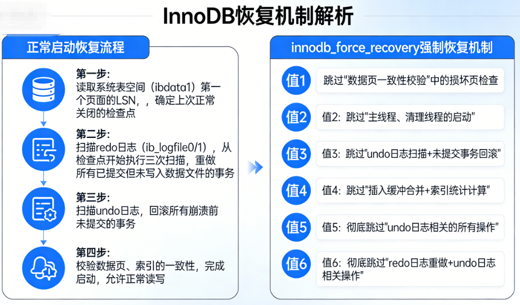 三、底层逻辑:innodb_force_recovery 的恢复机制