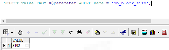 SELECT value FROM v$parameter WHERE name = 'db_block_size';