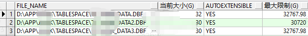 ALTER TABLESPACE TESTDATA ADD DATAFILE 'D:\APP\TEST\TABLESPACE\TESTDATA5.DBF' SIZE 10G AUTOEXTEND ON NEXT 500M MAXSIZE 32767M;添加完毕后如下: