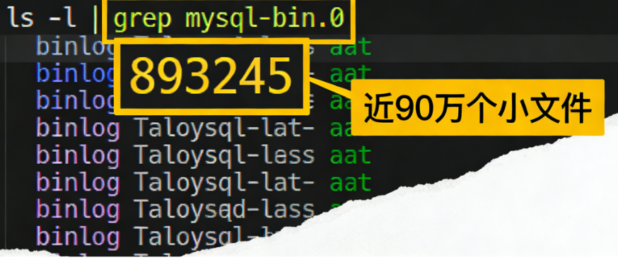 find / -type f | awk -F '/' '{print $2}' | sort | uniq -c | sort -nr | head -10执行后,会显示文件数量最多的目录,比如看到 var 目录文件数量极高,再进一步排查 /data/mysql/mysql3306(数据库目录),大概率能找到大量的binlog小文件或慢查询日志碎片。