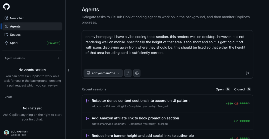 GitHub Copilot coding agent:你把一个 issue 分配给 Copilot,它自动开分支、写代码、跑测试、开 PR。你只需要 review。