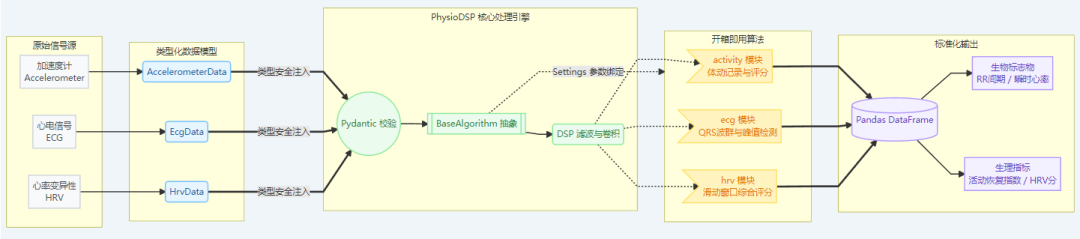 可穿戴设备的生理信号处理是健康科技与研究领域反复出现的工程难题。ECG 记录、心率变异性指标、加速度计数据,不管处理哪一类信号,从原始传感器输出到有意义的生物标志物,整条链路都是碎片化的:算法散落在论文、代码仓库和临时脚本里,接口各不相同,数据模型也无法共享。