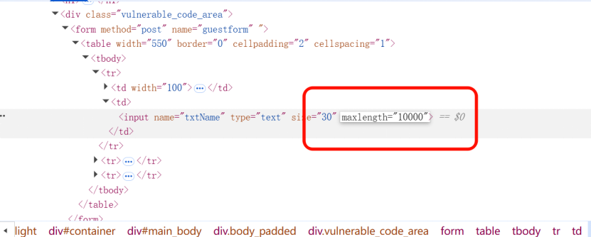 $name=preg_replace('/<(.*)s(.*)c(.*)i(.*)p(.*)t/i',"",$name);name输入框默认有长度限制,通过浏览器开发者工具修改maxlength为10000,允许输入长Payload。
