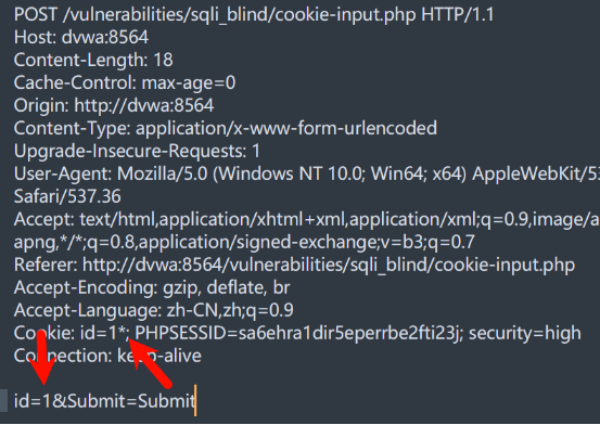 请求包中有多个参数时,避免同时标记多个注入点,逐个测试定位真实注入点(本次为Cookie的id参数)。
