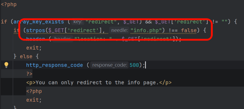 if(strpos($_GET['redirect'],"info.php")==false){