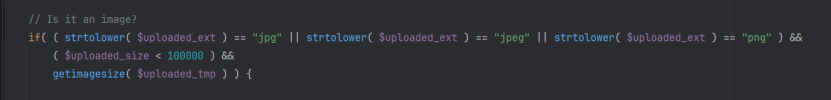 if((strtolower($uploaded_ext) in $allowed_ext)&&($uploaded_size<100000)&&getimagesize($uploaded_tmp)){