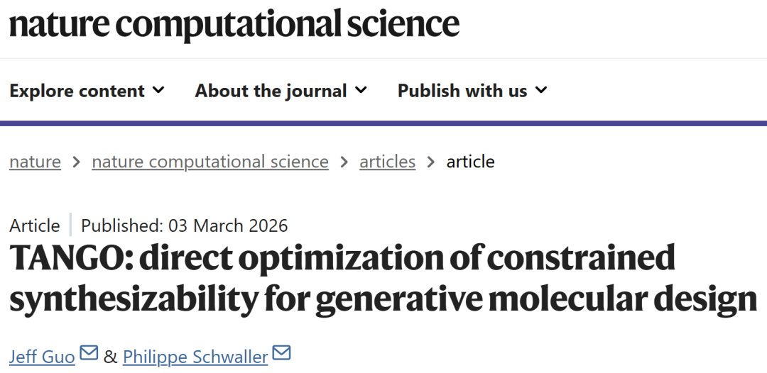 Guo, J., Schwaller, P. TANGO: direct optimization of constrained synthesizability for generative molecular design. Nat Comput Sci (2026).