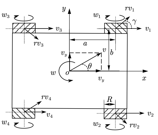 小车平台采用麦克拉姆轮和闭环控制步进电机,在平面内的移动距离信息和陀螺仪检测 Z 轴的旋转角度, 实现全场定位, 采用位置式 PID 控制策略来控制小车姿态与位置