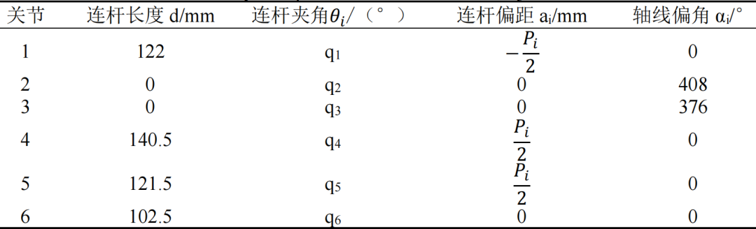 六关节机械臂拥有完整的六个自由度,且相比 SCARA 机械臂运动位姿更加灵活,六关节机械臂的手 - 臂 D-H 连杆参数如下
