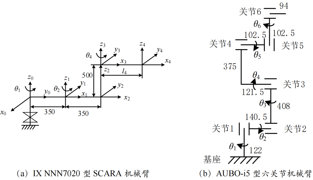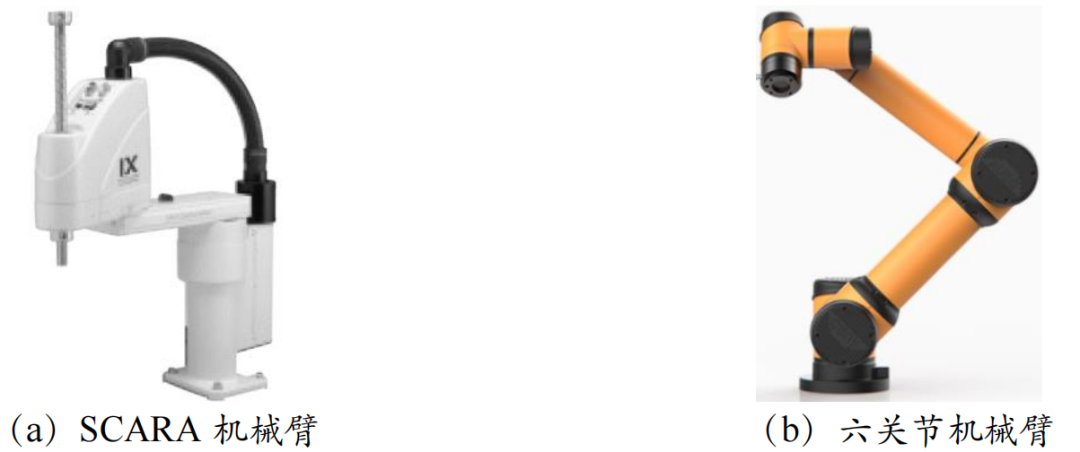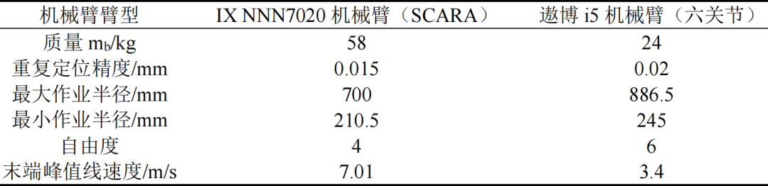 SCARA 机械臂和六关节机械臂,SCARA 型号为日本IAI 公司 IX NNN7020 工业机器人,六关节机械臂为遨博的 i5 协作机器人,其实物及模型如下: