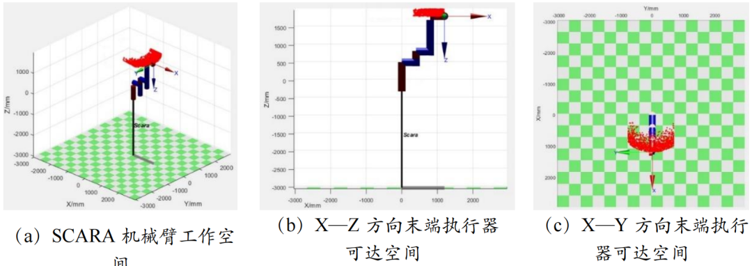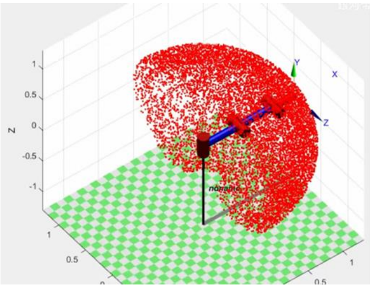 使用蒙特卡洛法对两种备选臂型方案的手 - 臂工作空间进行仿真验证,末端能够到达的所有空间位置点集合将构成手 - 臂的工作空间。