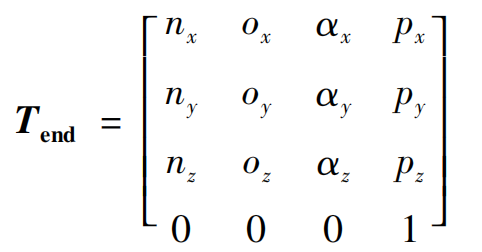 以代数法求解 SCARA 机器人逆运动学 ,令末端执行器位姿矩阵: T end :