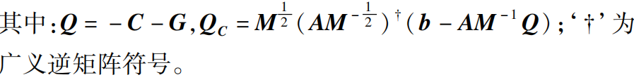 其中,M是质量矩阵,q¨是广义加速度,Q是已知力(包括外力、科氏力、重力等),当系统受到约束(约束方程可化为加速度层面的线性形式Aq¨=b)时,U-K方程给出受约束系统的总加速度和约束力的显式解: